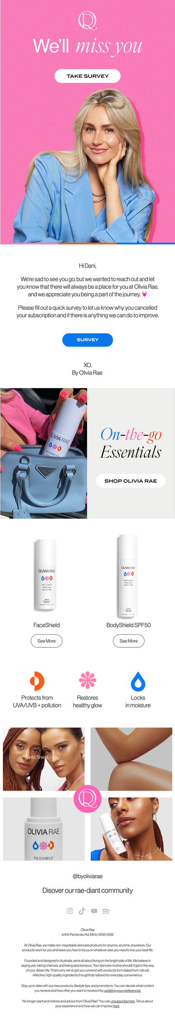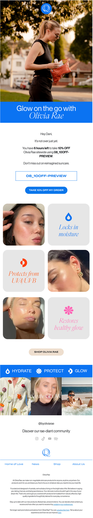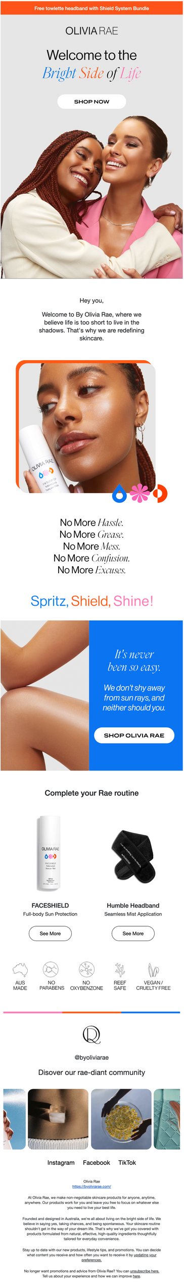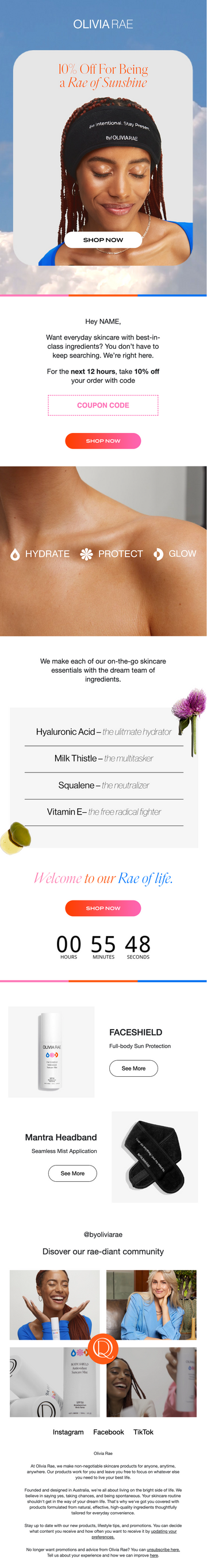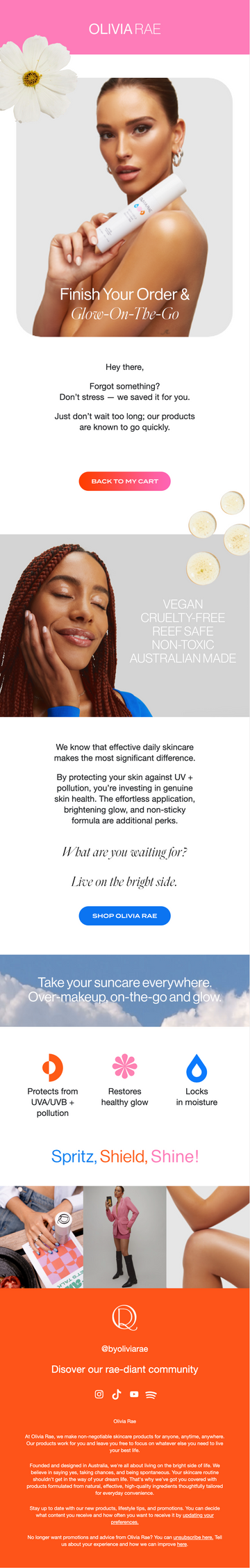 Email design for a Flowium client By Olivia Rae. The client is a young female-led company based in Australia aiming to disrupt the skincare industry with a revolutionary suncare product targeting younger audience and they wanted their designs to reflect that.