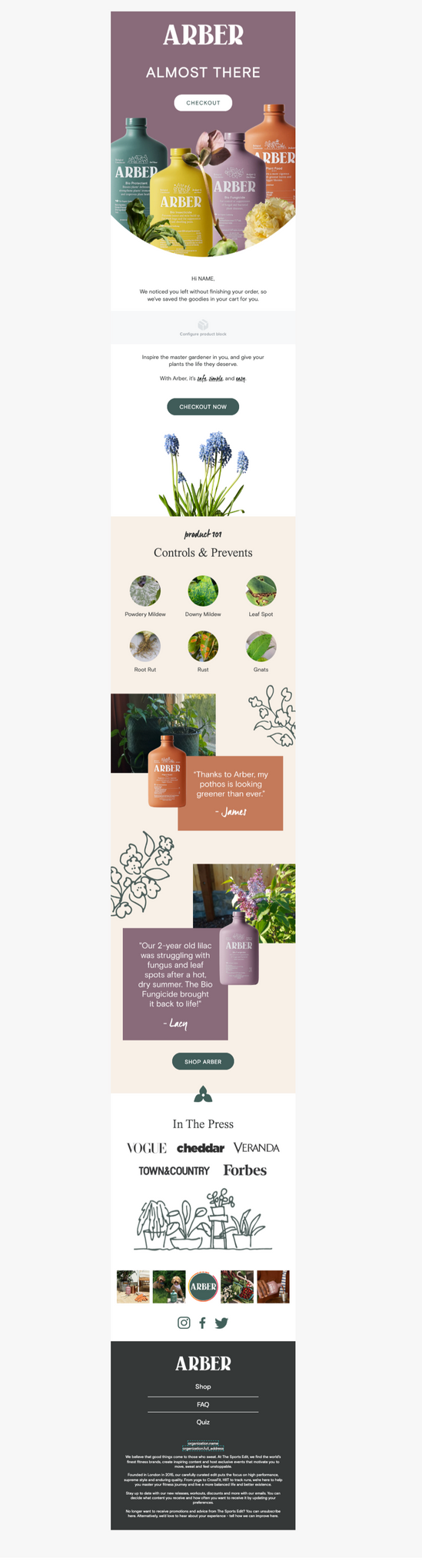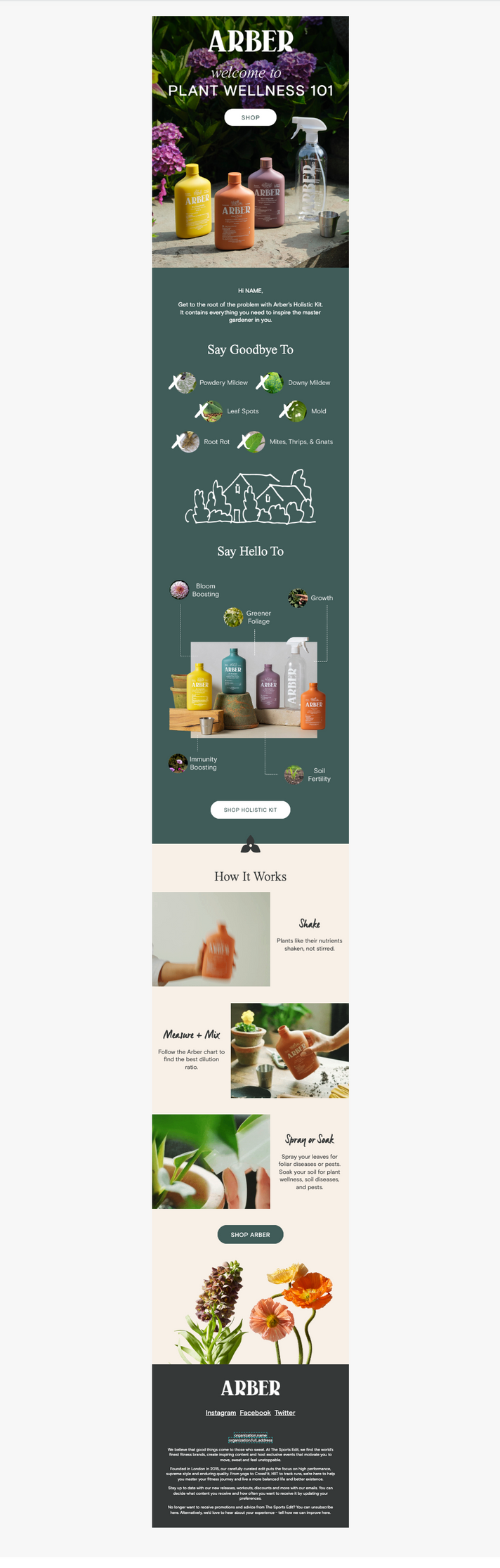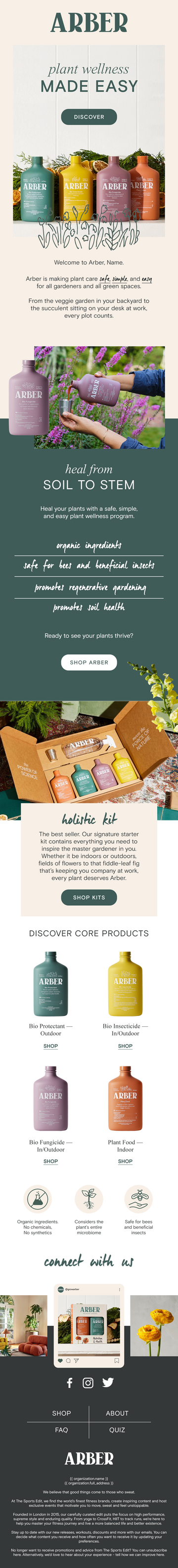 I designed Arber's email concept to reflect their mission of making plant care easy for all. The clean and natural design, combined with fun and unique packaging, sets them apart from the competition.